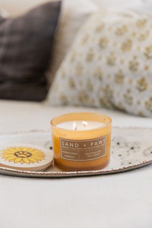 Sand + Paws is our ode to the furry companions who fill our lives with joy and love. Crafted with care. these candles eliminate pet odors while infusing your home with delightful fragrances. Designed for pet lovers. Sand + Paws brings a touch of charm and freshness to your space. ensuring your furry friends feel right at home.